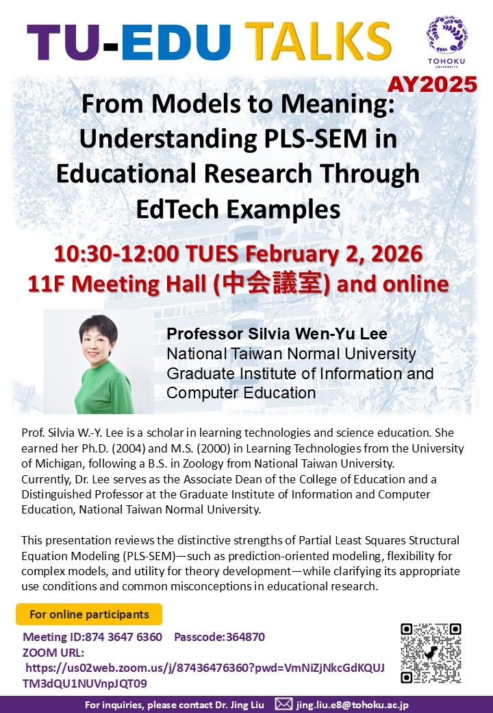 We are pleased to announce the 7th TU-EDU Talks of Academic Year 2025 to be held on February 2, 2026 (10:30-12:00).
